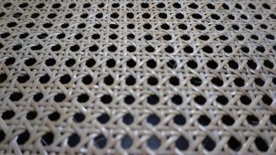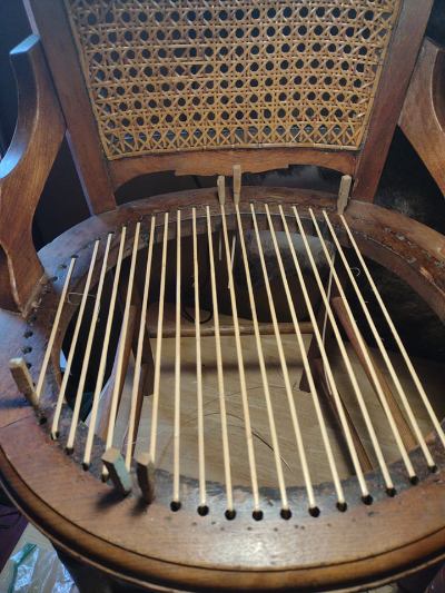 Starting a new woven cane chair. These take longer than the pressed cane. This is because, unlike the pre-woven sheets, one has to manually weave the pattern.