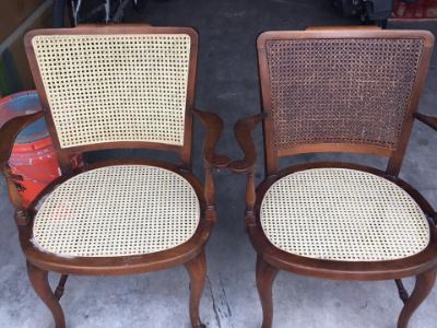 Originally, there was 5 chairs, now there is only 3. They were bought 20 or so years ago, and finally the cane went out. Got them repaired and looking good for another 20 years.